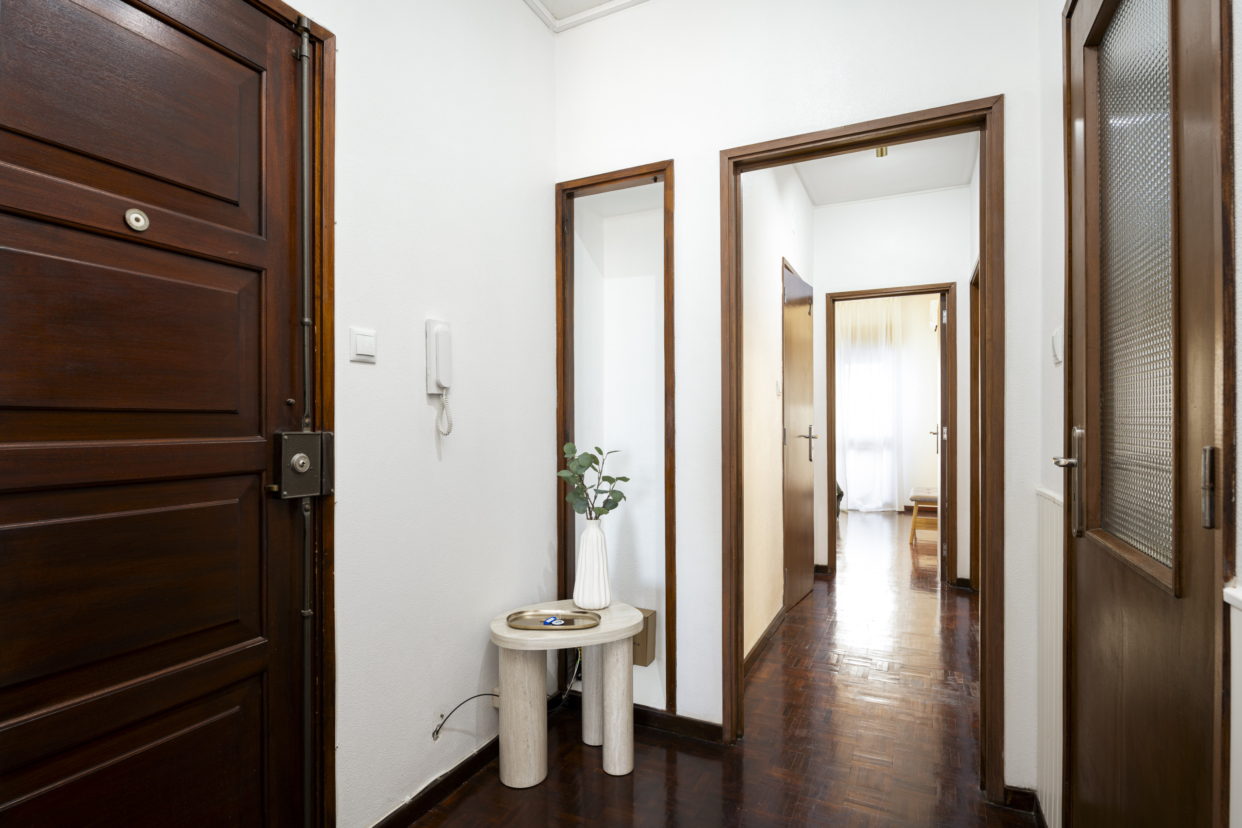 O apartamento tem capacidade para 4 adultos, com 2 quartos confortáveis que incluem uma cama de casal e duas camas individuais. A luminosidade e o design cuidado tornam este espaço acolhedor e funcional, ideal para quem procura um local tranquilo perto do mar.