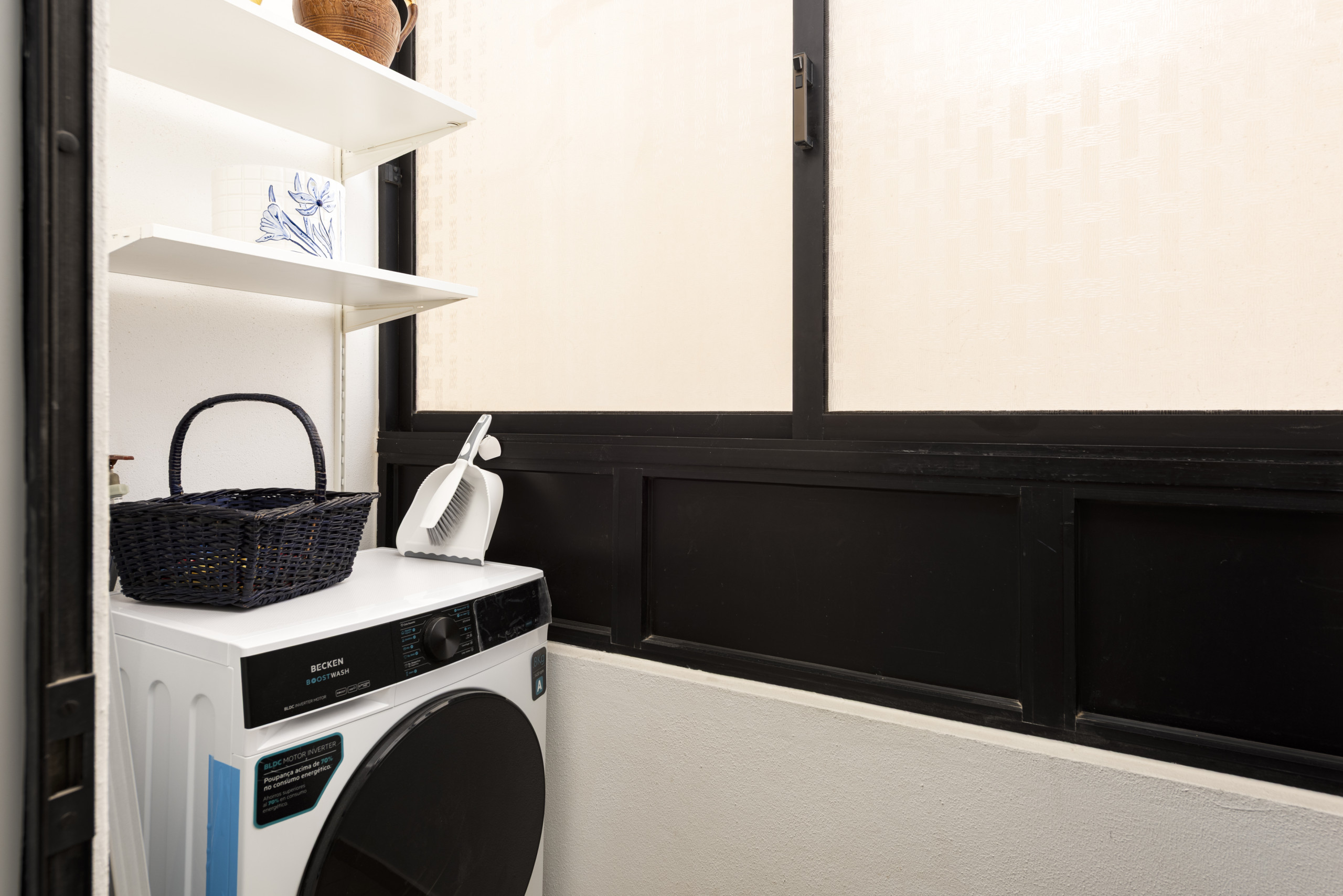 O interior é completamente funcional e bem equipado. Conta com ar condicionado, aquecimento elétrico, internet Wi-Fi e uma cozinha totalmente independente com eletrodomésticos modernos como frigorífico, máquina de lavar, máquina de secar, forno, micro-ondas, máquina de café e todos os utensílios necessários para refeições caseiras.