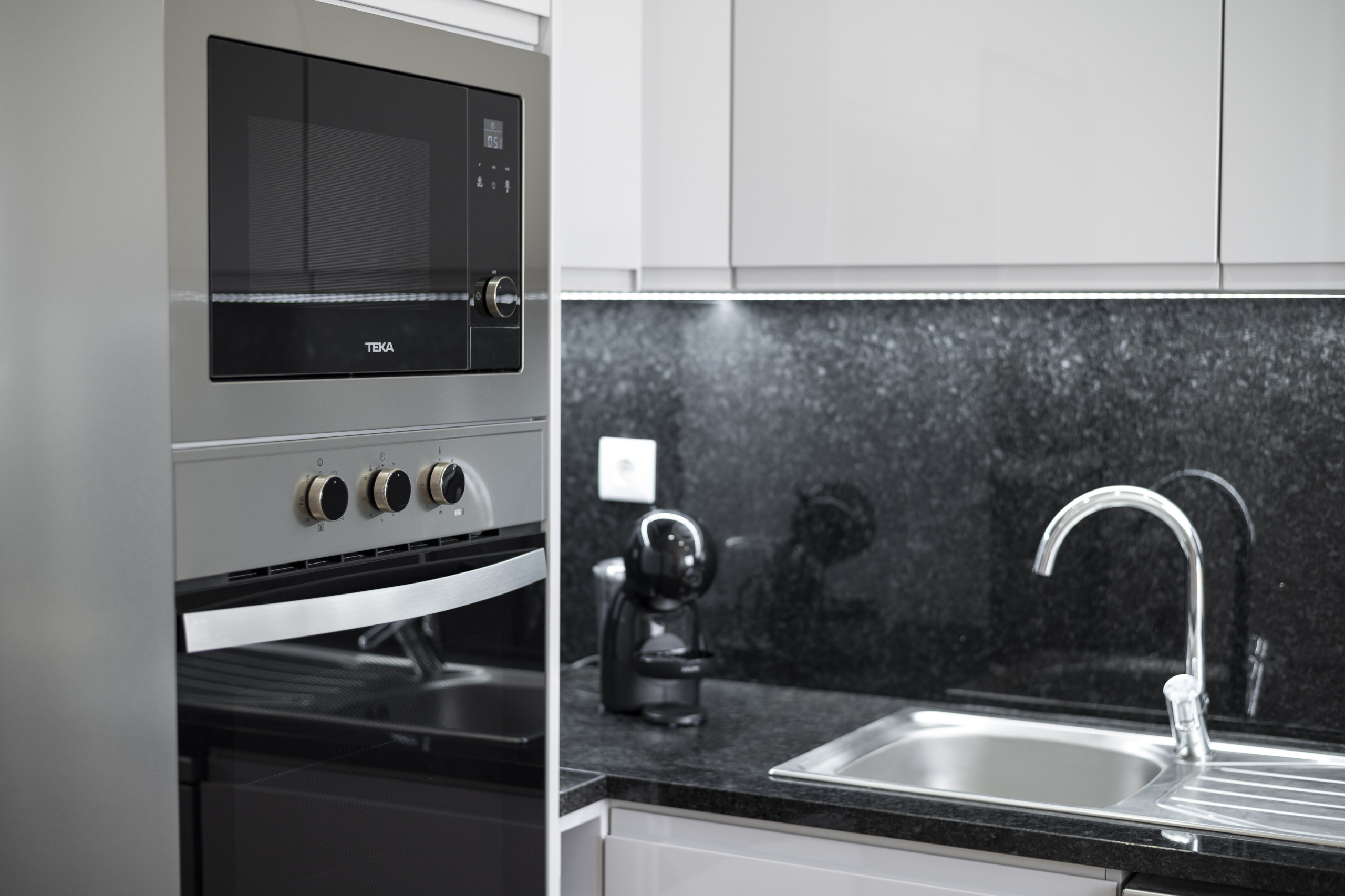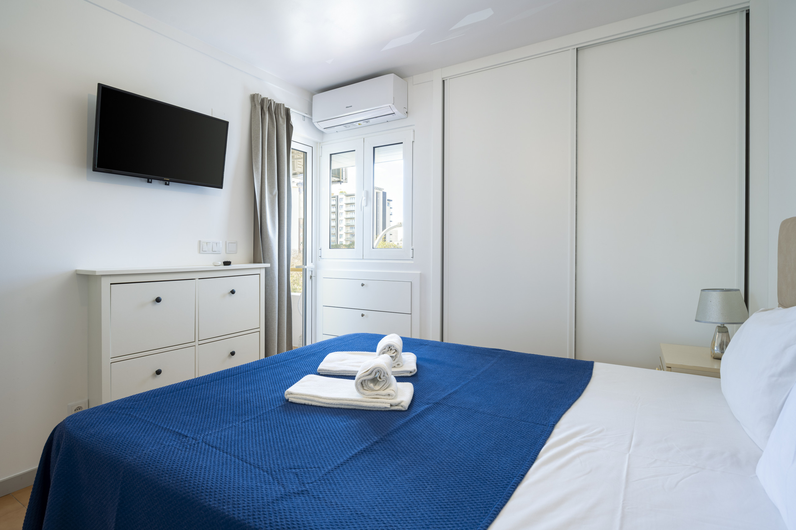 O apartamento dispõe de um quarto com uma cama de casal e um sofá-cama, oferecendo flexibilidade para diferentes configurações de dormida. A sala de estar conta com ar condicionado para garantir o máximo conforto durante todo o ano. A cozinha totalmente equipada é um verdadeiro ponto forte, com eletrodomésticos modernos como máquina de lavar, frigorífico, máquina de lavar louça, forno, micro-ondas, máquina de café e muito mais.