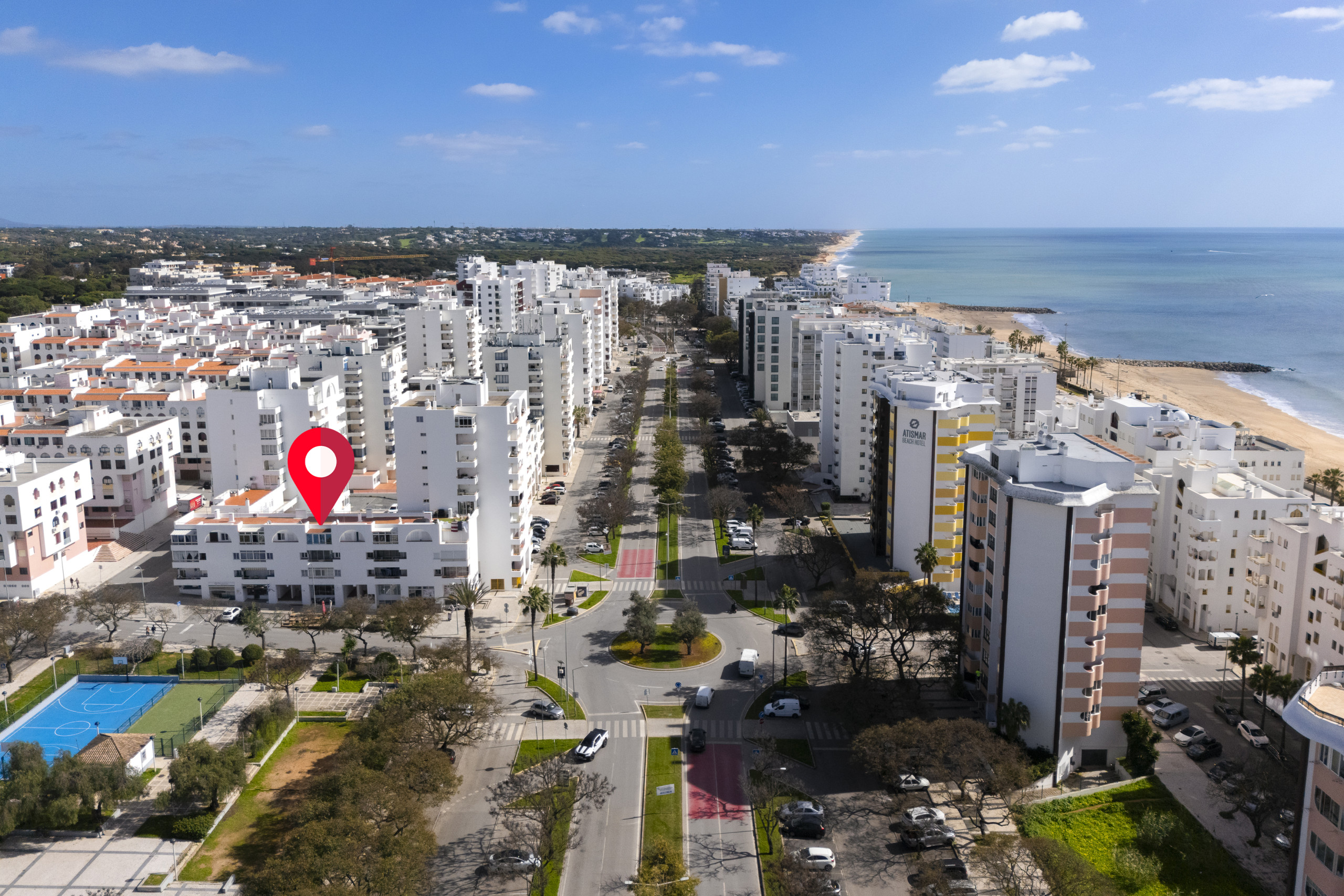 Localizado a apenas 500 metros da Praia de Quarteira, este apartamento oferece uma localização privilegiada. A poucos passos encontrará supermercados, terminal de autocarro e diversos serviços. Pontos de interesse próximos incluem o campo de golfe Vila Sol a 4 km, o hospital Lusíadas Vilamoura a 3 km e o aeroporto de Faro a 25 km.