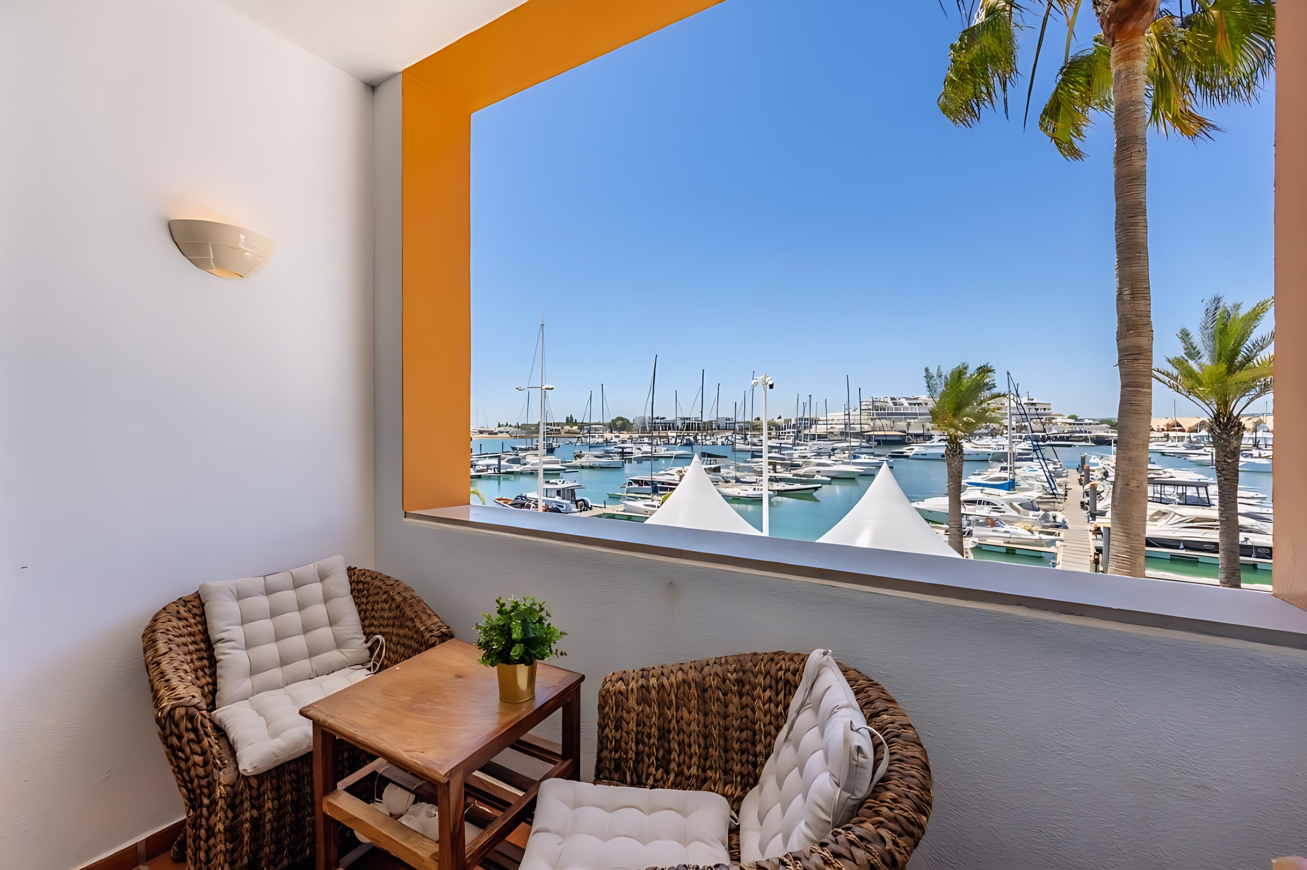 Luxuoso apartamento de 1 quarto em frente à Marina de Vilamoura. Este apartamento está localizado na Marina de Vilamoura e possui uma vista deslumbrante sobre o mar.